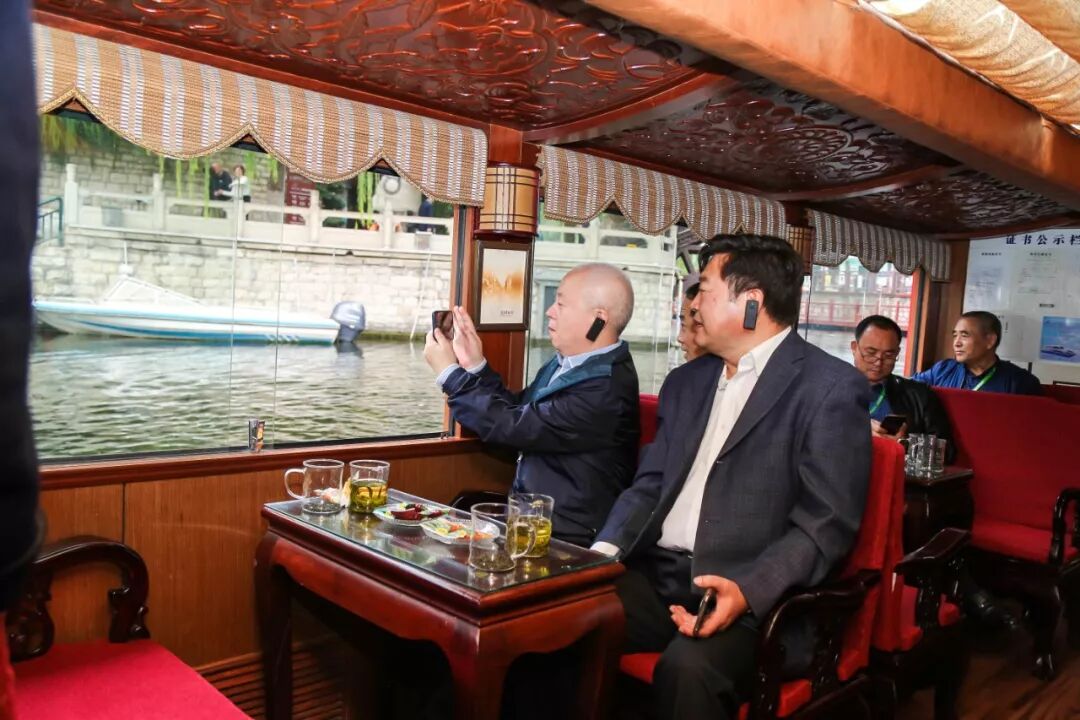 24日下午,与会嘉宾考察了济南宽厚里商业街,并乘画舫游览泉城风景。25日,考察团共同走访了济南泉城路、芙蓉街、百花洲等著名商业街区,对民俗文化、泉水风景进行充分了解,并品尝济南特有的泉水茶以及泉水豆腐。品味和感受济南商业街区的齐鲁风、泉城情。